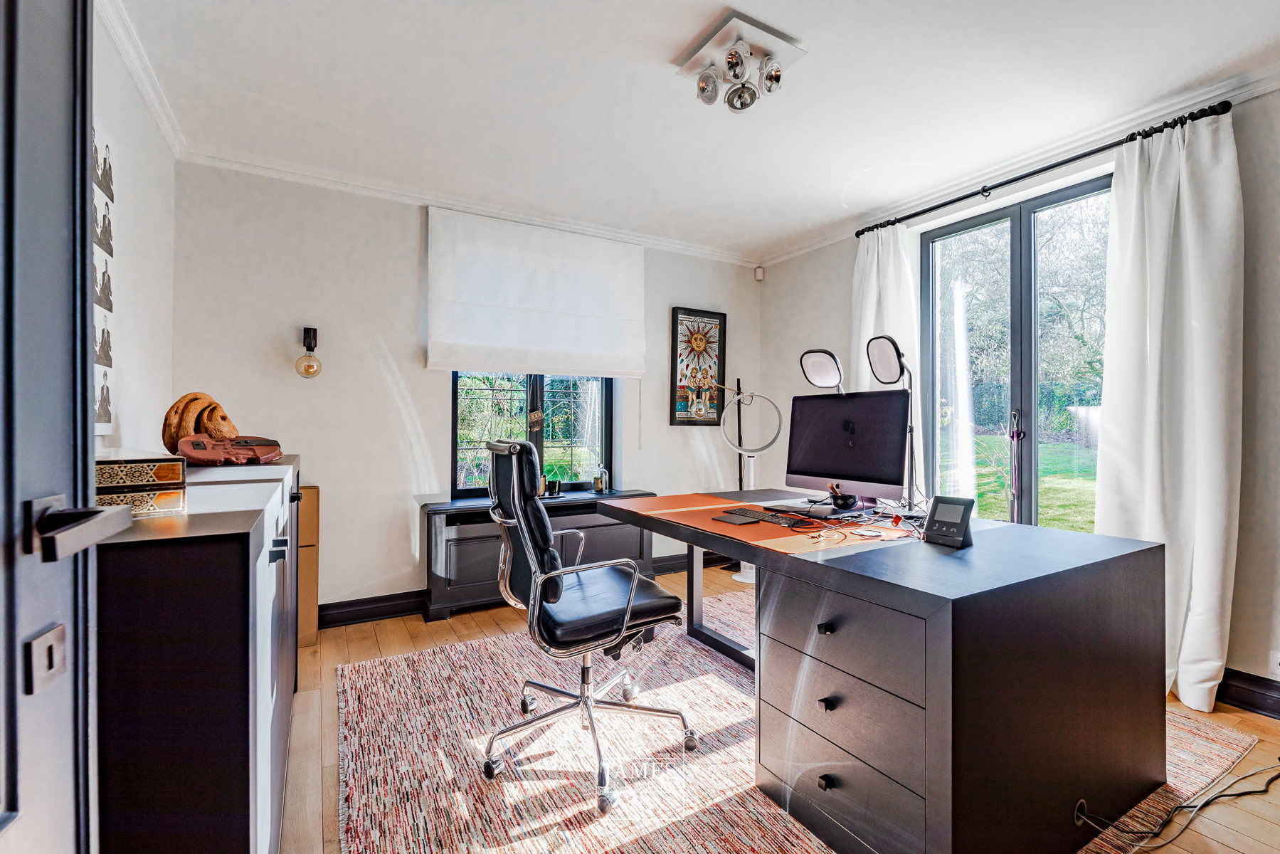 Un grand garage pour deux voitures, des panneaux solaires avec batteries de stockage ainsi qu’une charmante serre pour l’hivernage des plantes viennent compléter ce bien d’exception. Le jardin, parfaitement orienté, constitue un écrin de verdure apaisant.