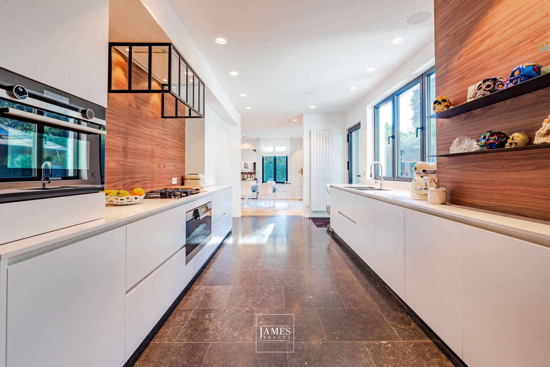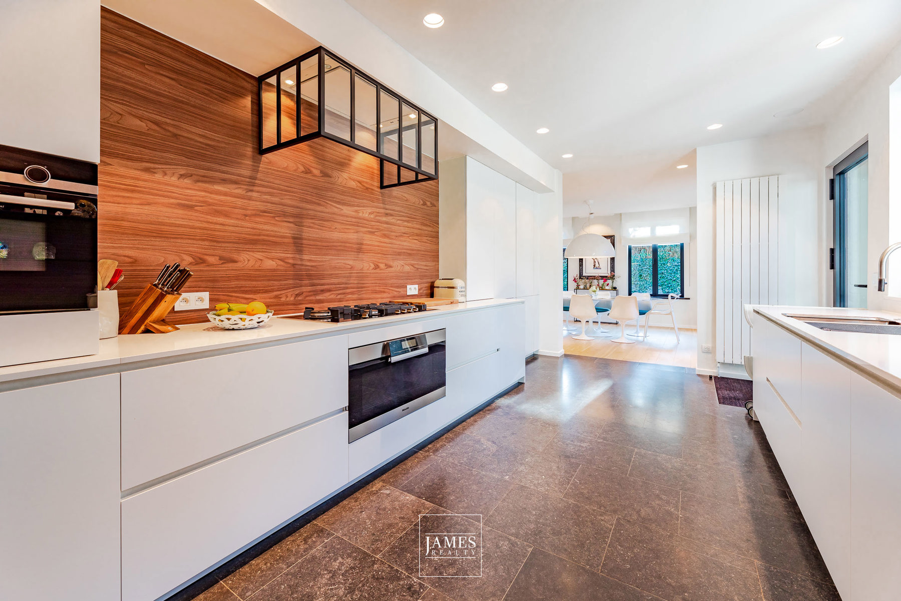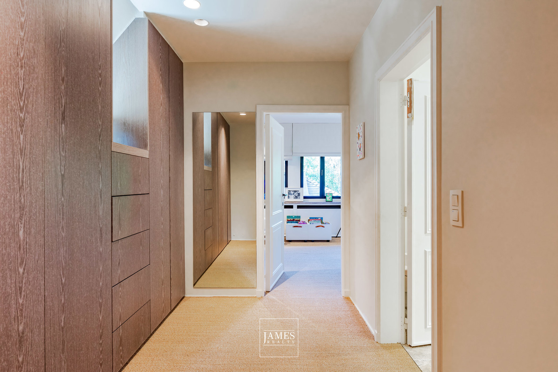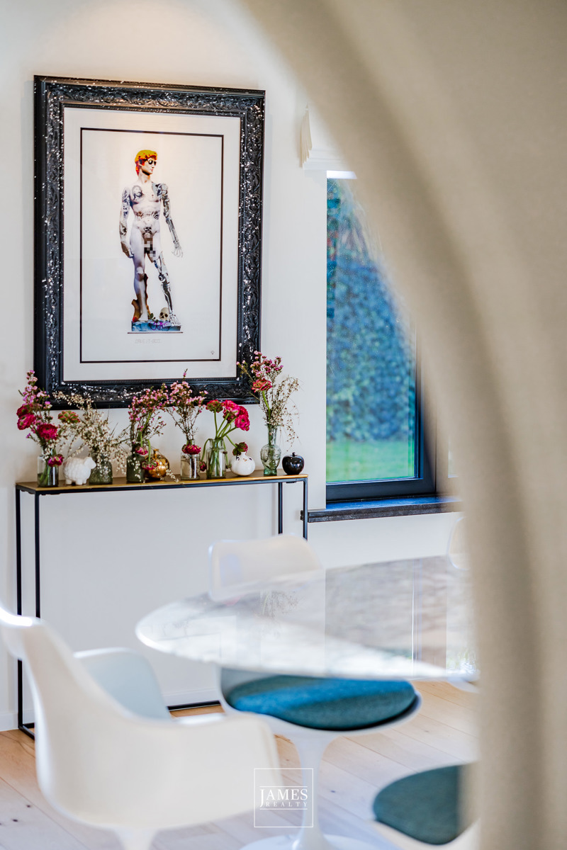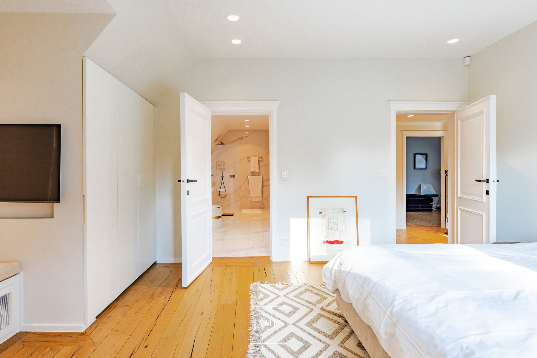 L’étage accueille plusieurs chambres et salles d’eau, toutes aménagées avec des menuiseries sur mesure et des finitions de grande qualité. Les sous-sols, vastes et fonctionnels, offrent quant à eux de généreux espaces de rangement, une cave à vins soignée ainsi que la chaufferie.