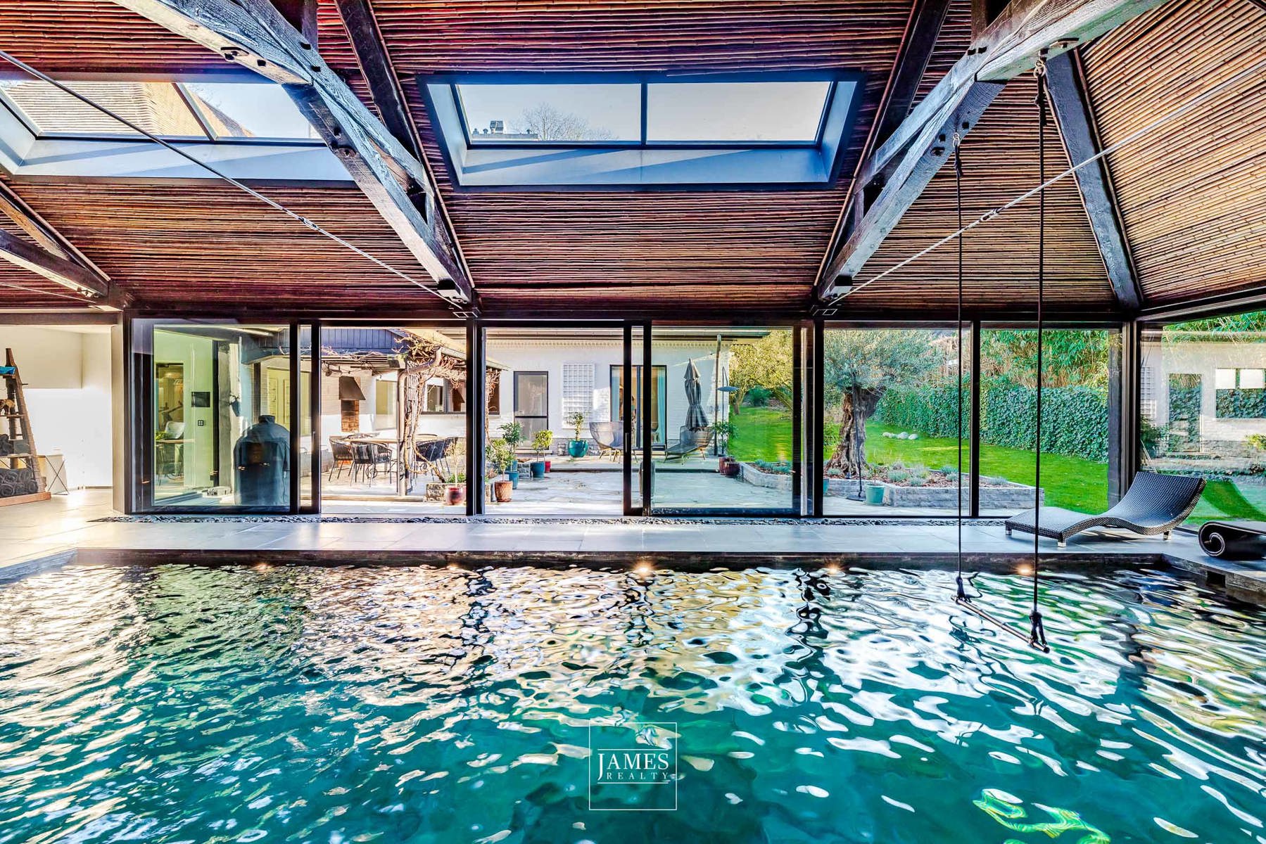 Véritable atout rare, la villa dispose d’une partie wellness exceptionnelle comprenant une piscine intérieure de grande dimension, un hammam, un sauna, une salle de sport et une salle de douche. Un espace pensé pour la détente et le bien-être au quotidien.