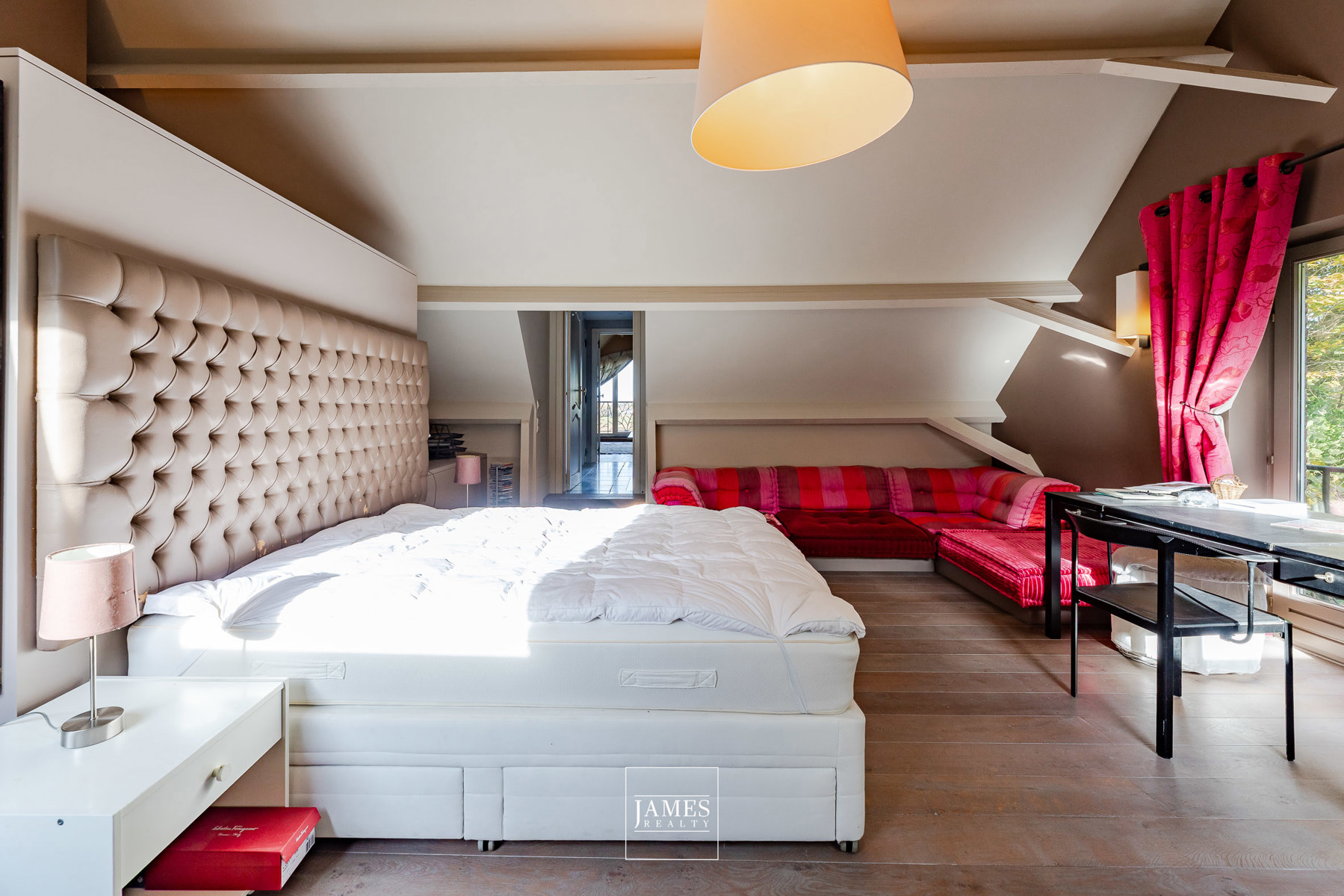 – Chambre 3 : 24 m², bureau intégré sur mesure, accès terrasse solarium de 26 m²