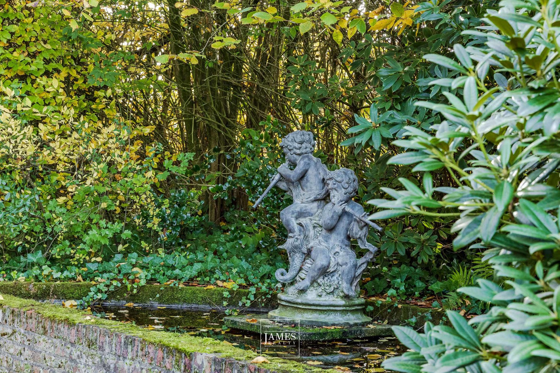 Créé par un paysagiste entre 1990 et 2001, le jardin est arrivé à pleine maturité et offre différentes atmosphères : pièces d’eau, fontaine, zones de détente, cuisine d’été, terrasses sous pergola.