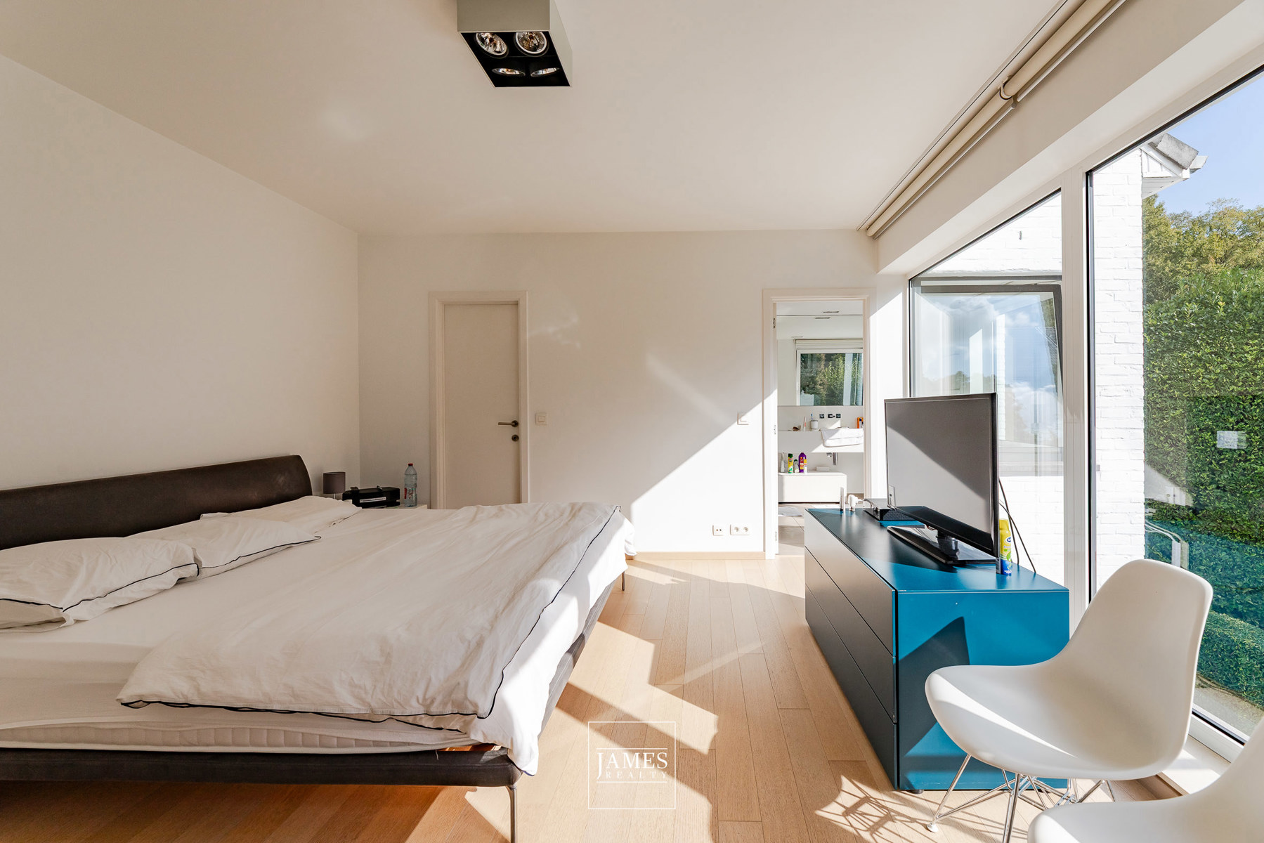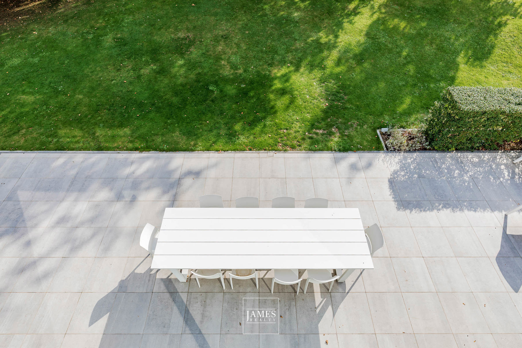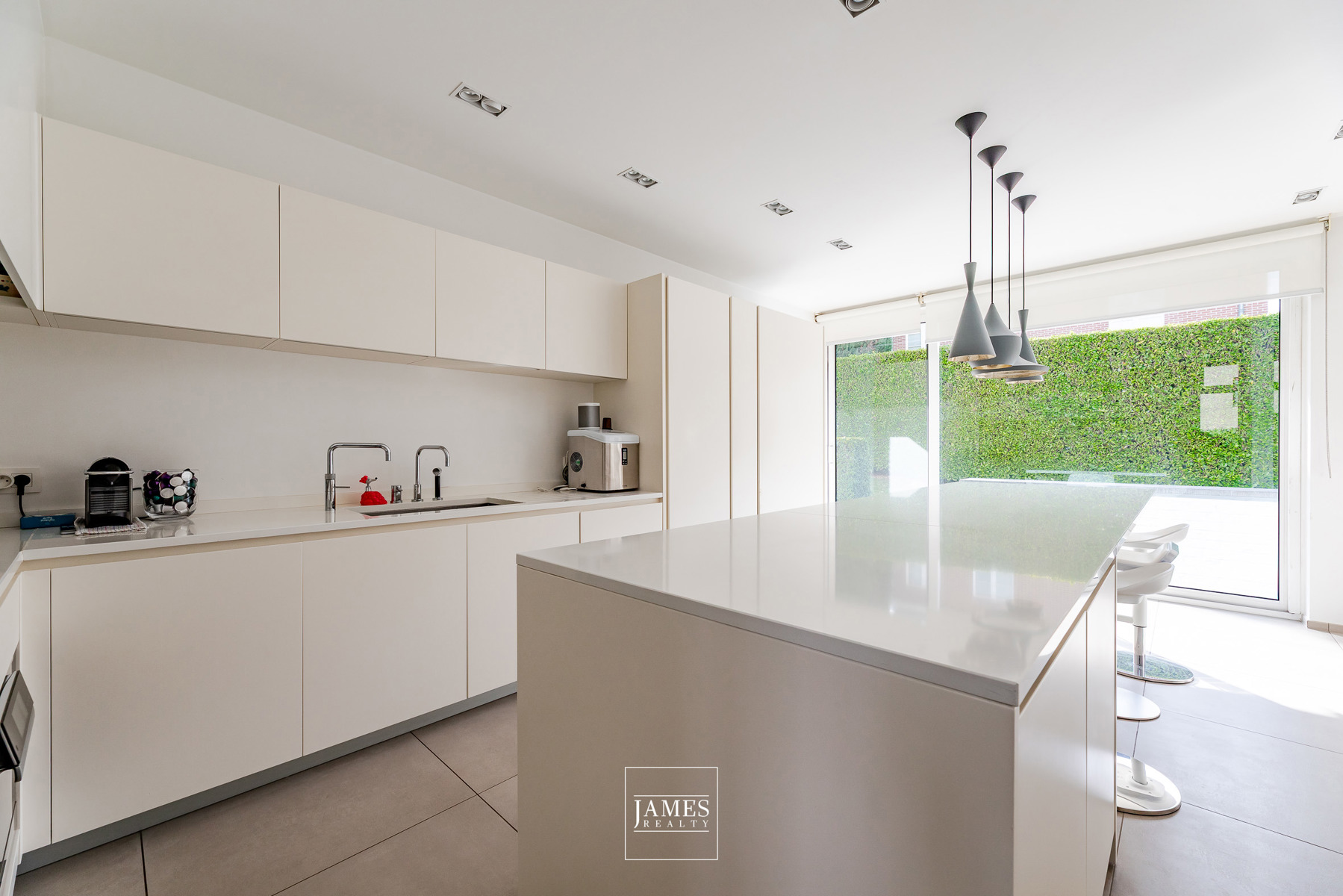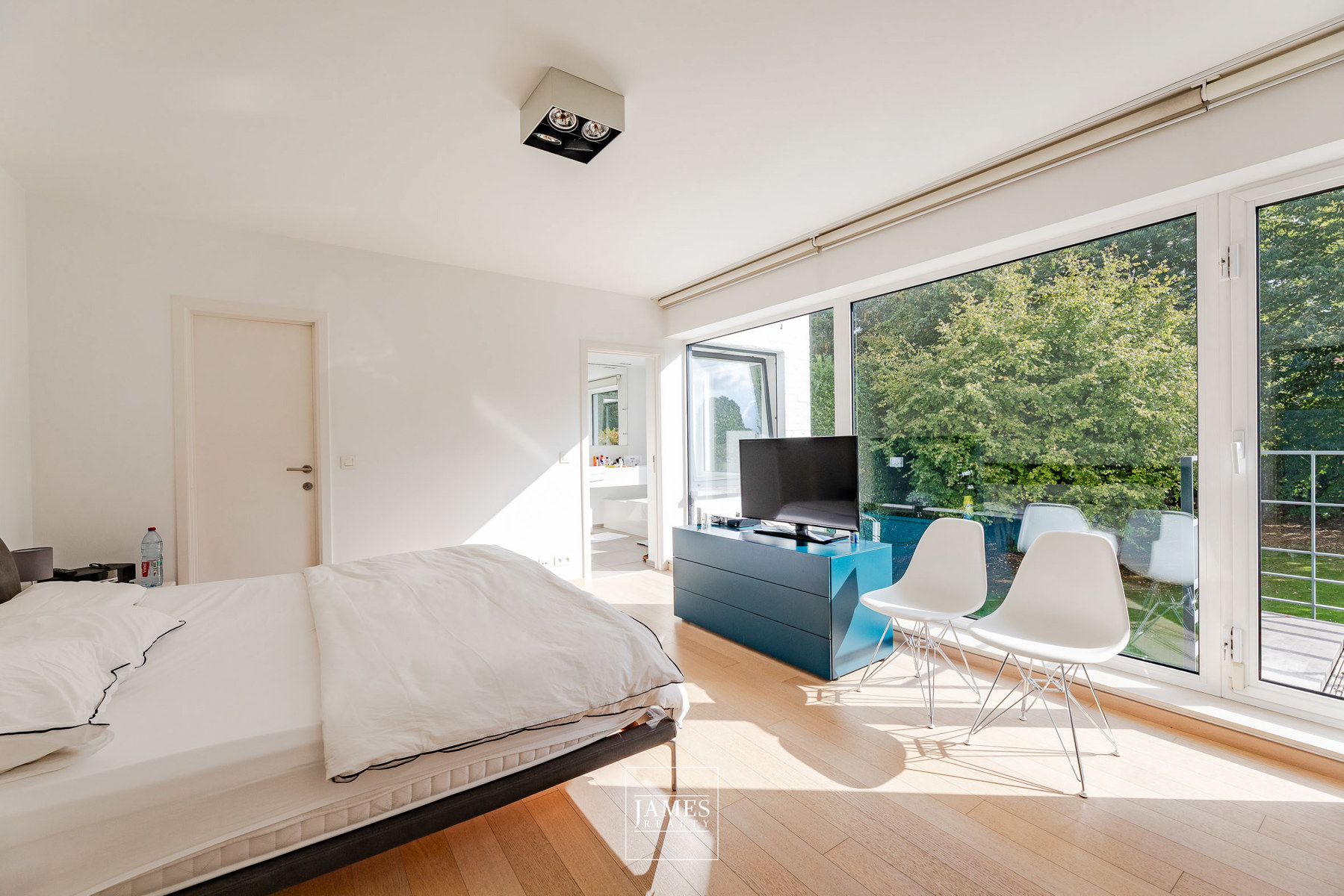 Idéalement située dans le quartier résidentiel du Prince Baudouin à Woluwe-Saint-Pierre, cette villa d’esprit moderne a été rénovée en profondeur en 2014 et développe une superficie d’environ 554 m² sur un terrain de 16 ares joliment planté et arboré avec son petit terrain de pétanque.
