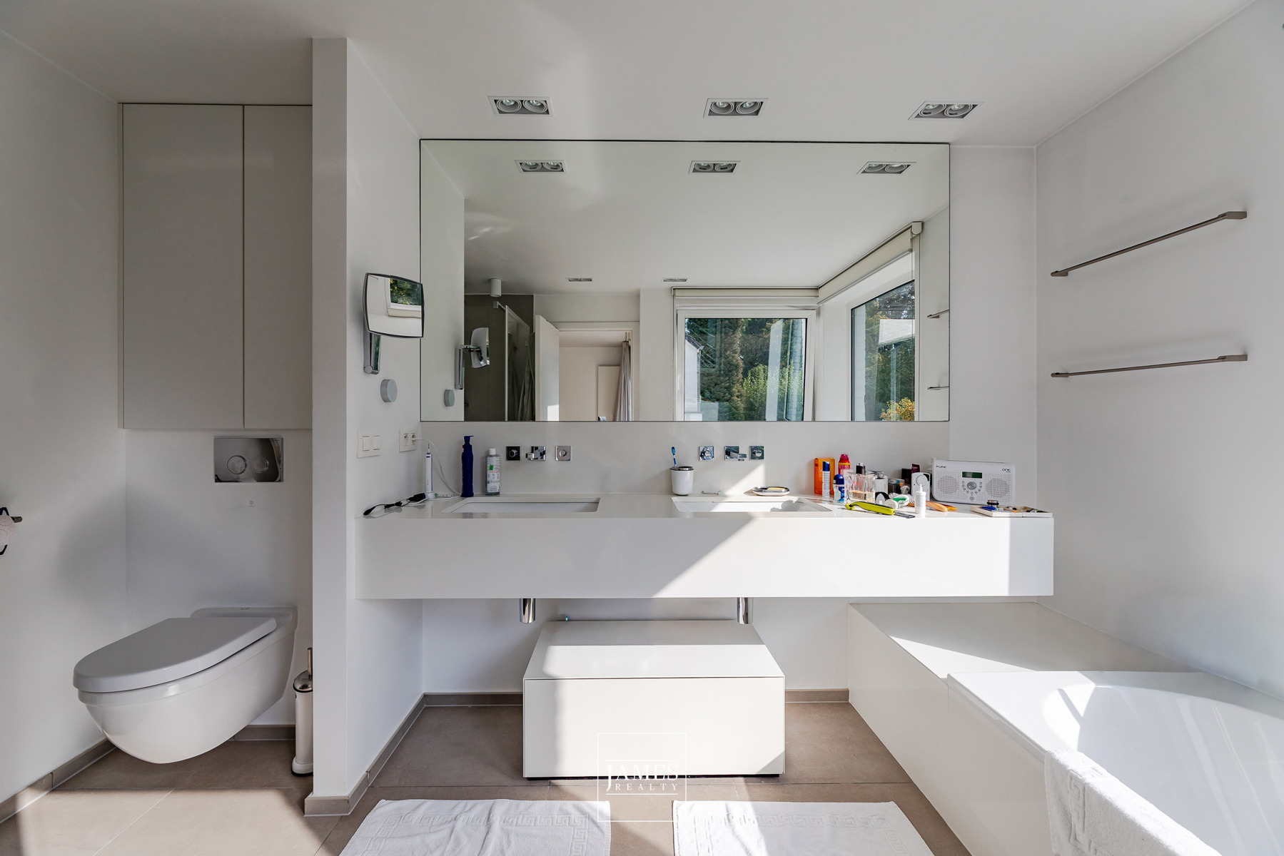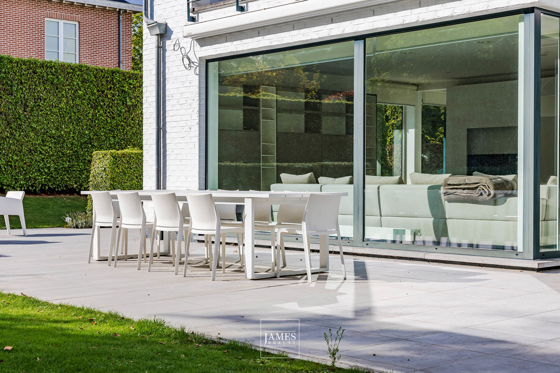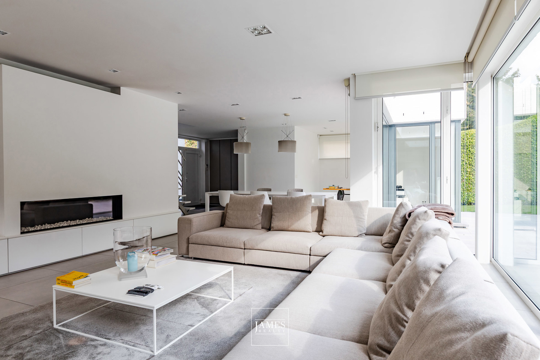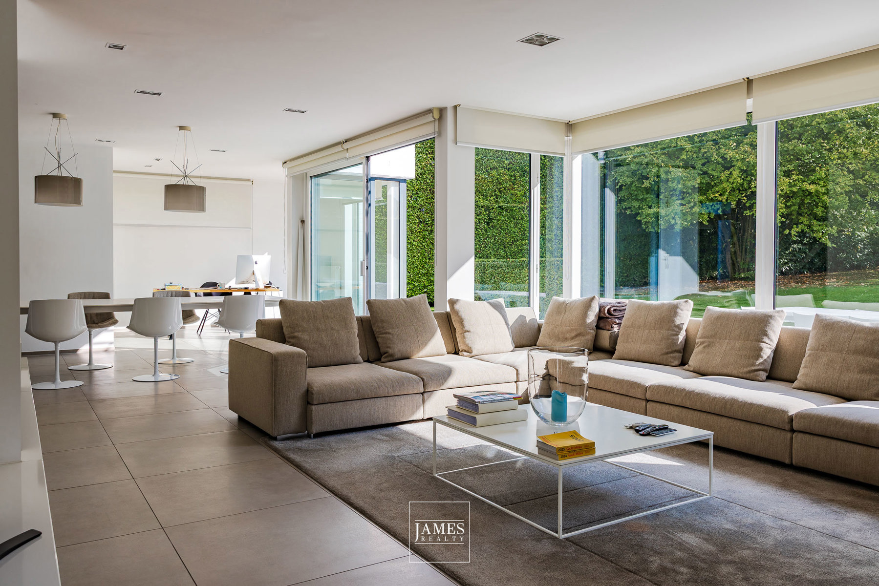 Idéalement située dans le quartier résidentiel du Prince Baudouin à Woluwe-Saint-Pierre, cette villa d’esprit moderne a été rénovée en profondeur en 2014 et développe une superficie d’environ 554 m² sur un terrain de 16 ares joliment planté et arboré avec son petit terrain de pétanque.