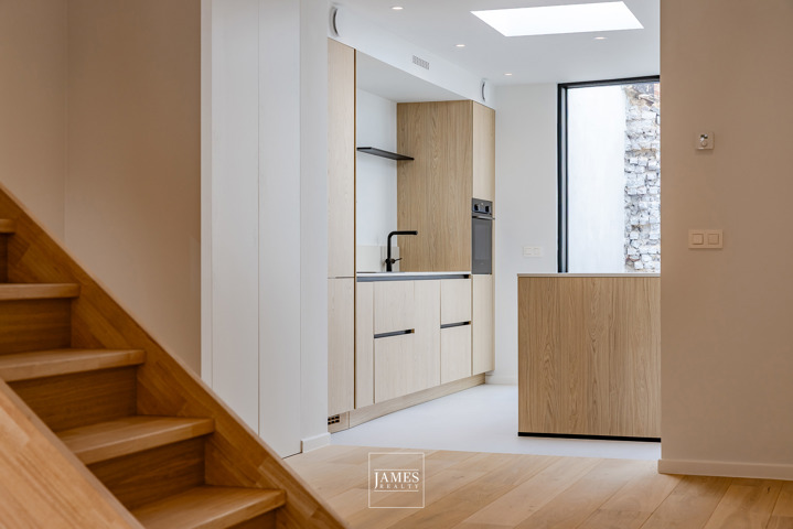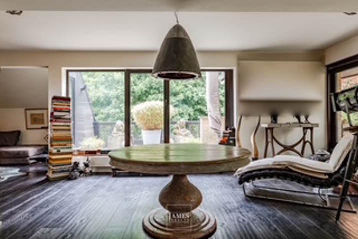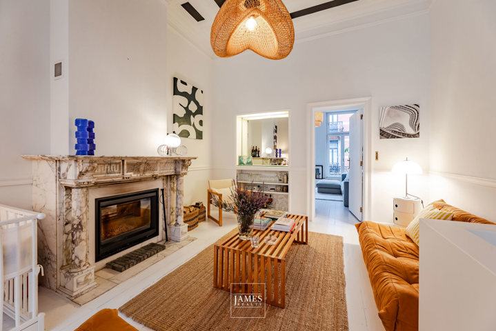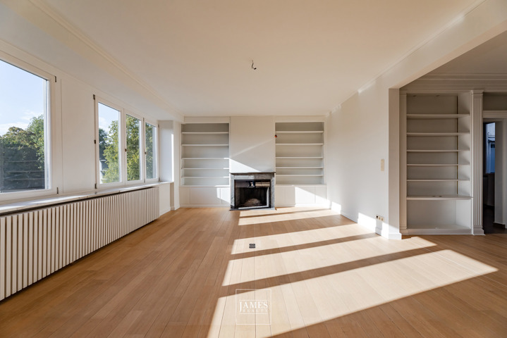 Het appartement heeft een oppervlakte van ± 206 m² (volgens EPC) en beslaat de drie bovenste verdiepingen van een klein mede-eigendom met twee kavels. Het werd in 2019 grondig gerenoveerd. De toegang gebeurt rechtstreeks via een privélift die naar de inkomhal leidt, van waaruit u enerzijds toegang krijgt tot de woonkamer met open haard en anderzijds tot de eetkamer en de keuken, die allemaal baden in het licht.